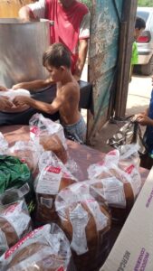 Repartiendo comida en los barrios de la ciudad de Rosario